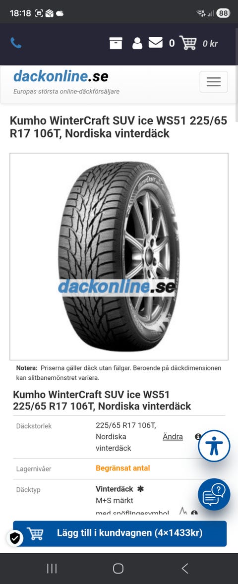 Vinterdäck på fälg 19”