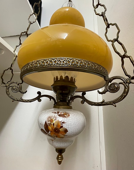 350 krÄldre taklampa/takfotogenlampa, elektrifierad, mässing, kupa av glasÅkersberga26 marLägg till i favoriter.Öppna annons