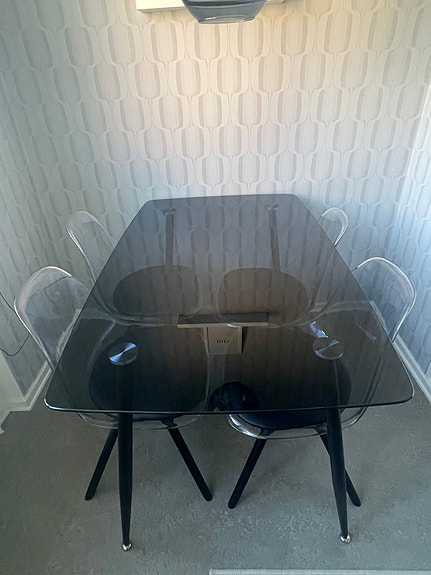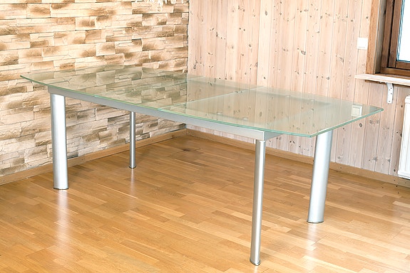 Glasbord med metallstativ