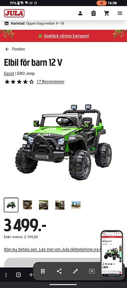 1 000 krElbil för barn.Sunne1 dagGratis frakt•Köp nuLastbil i rörelseKan skickasLägg till i favoriter.Öppna annons
