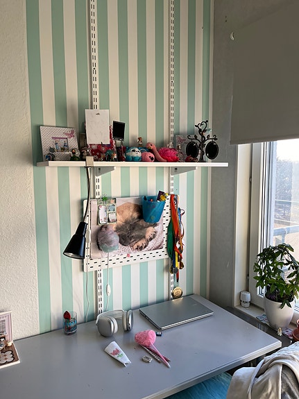 Bäddsoffa, garderober och hylla