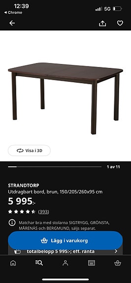 2 000 krIKEA STRANDTORP utdragbart bord 150/205/260 x 95 cm IKEASolna8 timLägg till i favoriter.Öppna annons