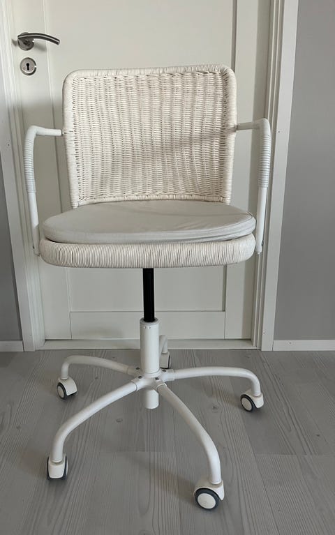 600 krIKEA skrivbordsstol på hjul med rotting och vit ram IKEAKristianstad1 dagLägg till i favoriter.