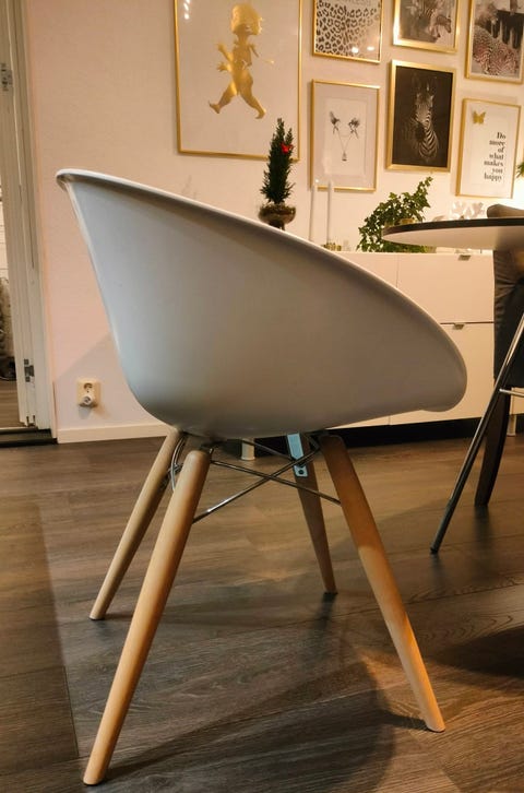 Vit trästol med grå sits