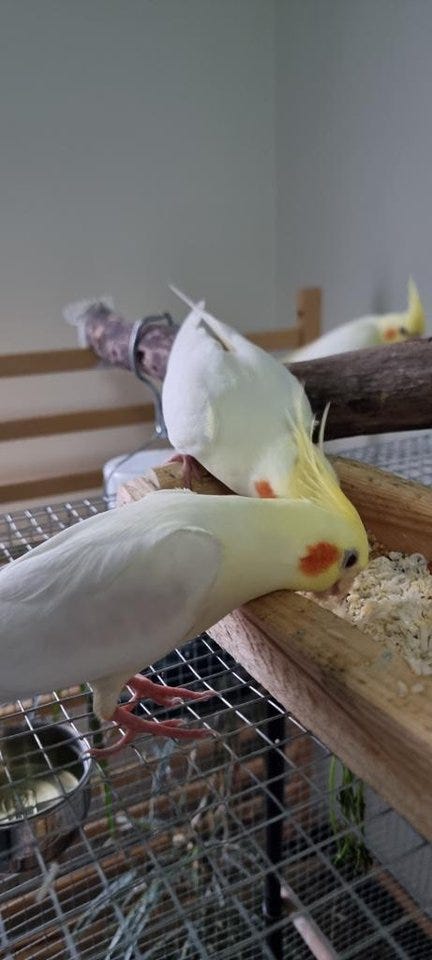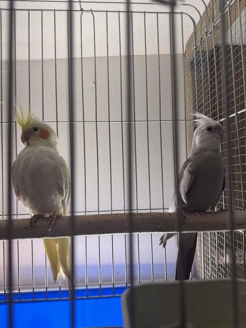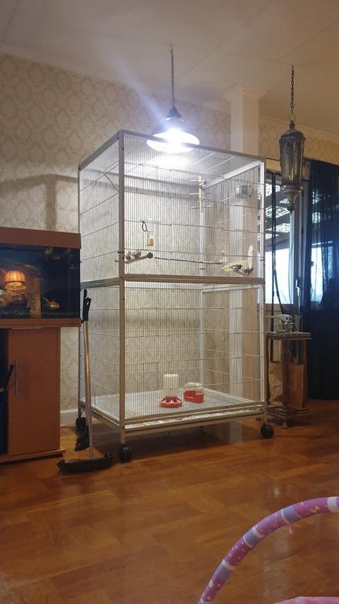 2st Tama Nymfparakiter med bur