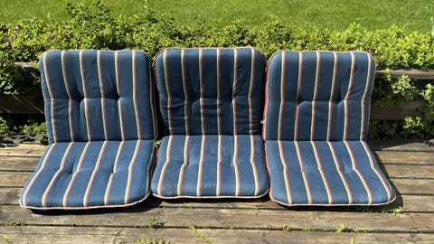 Trädgårdsstolar med ljus dyna.