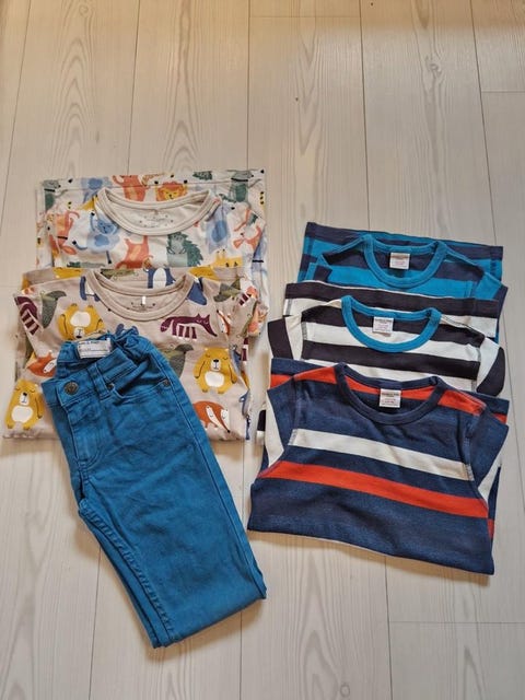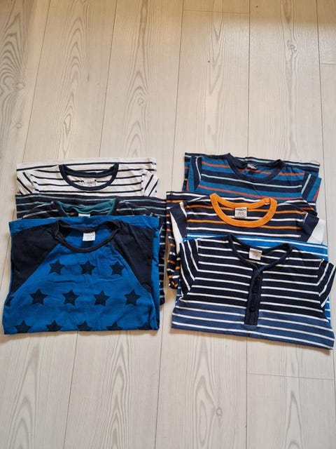 Som förälder vet du att ljudet av tvättmaskinen är en del av vardagen. T-shirts, skjortor och toppar behöver finnas i stora mängder i garderoben, så att tvättmaskinen inte behöver gå hela tiden. När du köper begagnade skjortor och toppar blir priset lägre. Barntröjor är ofta gjorda av bomull. En begagnad bomulls-t-shirt kan vara extra bekväm för ett barn med känslig hud, eftersom den ofta känns mjukare tack vare fler tvättar.