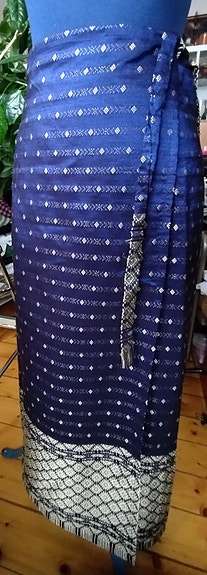 Ny blank mörkblå omlott kjol med guld mönster, thaisiden