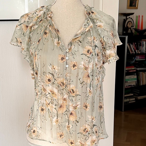 (Nr 13) Kortärmad blommig blus. Dam. Stl: M.