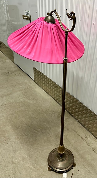 Golvlampa rosa tygskärm metallstomme