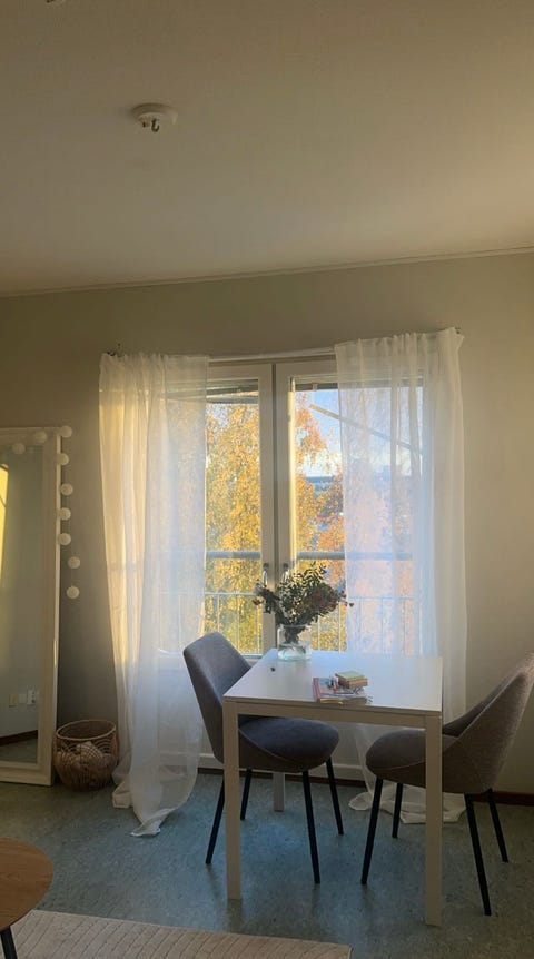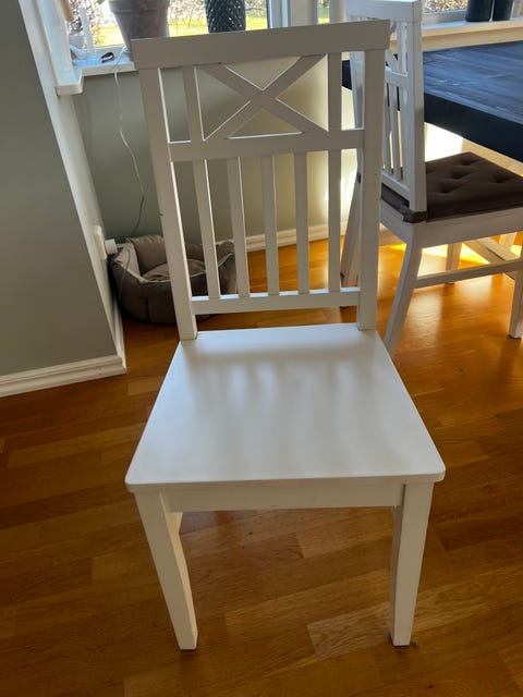 Vitt matbord med stolar