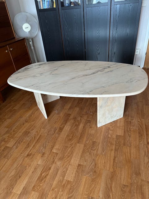 Ovalt soffbord i grön marmor