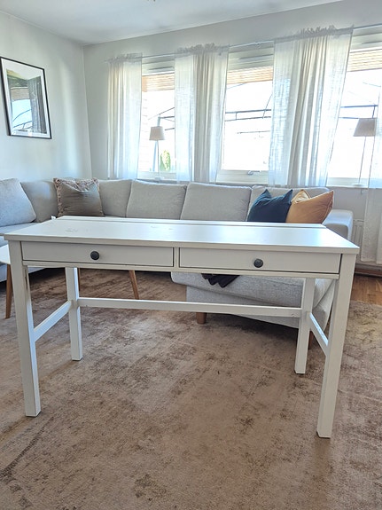 Ett skrivbord som inte längre behövs av någon annan kan vara precis vad du letar efter. Särskilt skrivbord i massivt trä eller elektriska skrivbord kan vara kostsamma, men du kan hitta ett passande alternativ betydligt billigare begagnat. Ett bra skrivbord har en höjd som passar användaren eller kan justeras efter behov. När du bläddrar bland annonserna - se till att kolla bordets mått och jämför dem med den bästa arbetshöjden för dig.