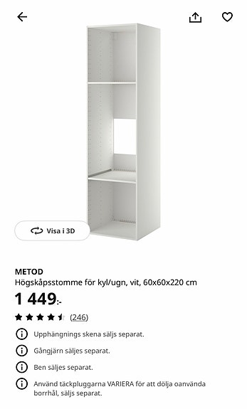 1 000 krIKEA PAX högskåp 50x60x200 cm – med hyllor och trådkorgar IKEAMalmö5 dagarLägg till i favoriter.Öppna annons