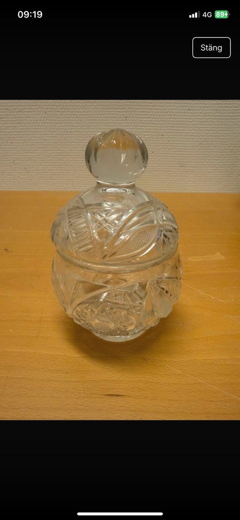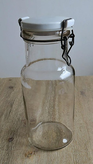 Äldre glasburk med vitt porslinslock