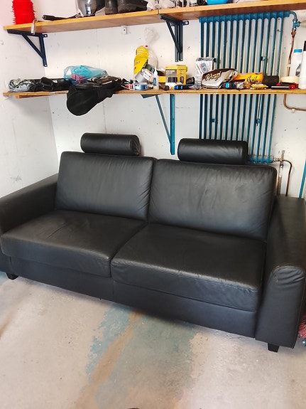 Bortskänkes - Svart IKEA skinnsoffa – 3-sits