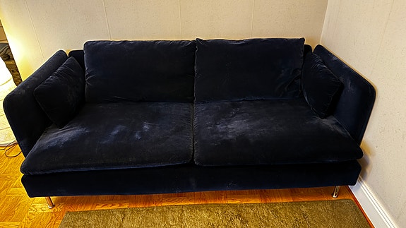 SUPER-FYND!! Jättefin & bekväm MÖRKBLÅ soffa!! LÄCKER & UNIK färg! FYNDCHANS!