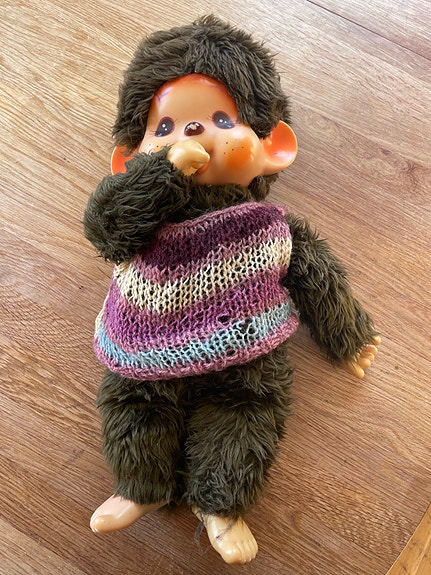 Monchhichi apa mjukisdocka brun med stickad tröja