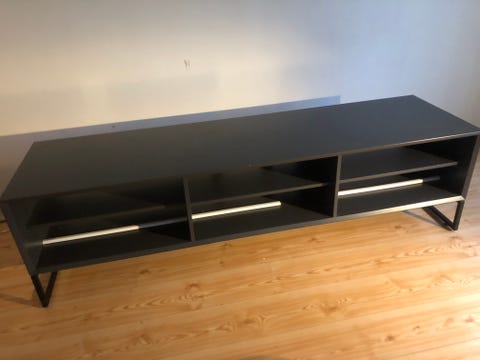 Svart TV-bänk med öppna fack