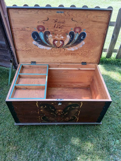 Trälåda med målad dekor