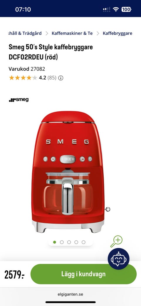 Smeg Kaffebryggare Röd