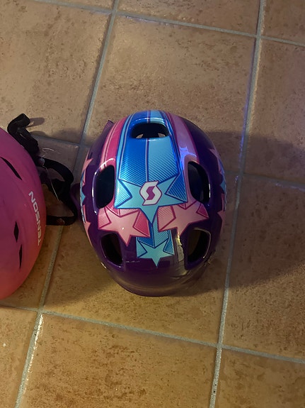 Scott cykelhjälm barn lila blå stjärnmönster och skidhjälm.