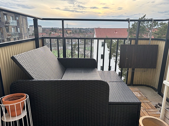 680 krÄpplarö utemöbel i trä för uteplats eller balkong med svarta dynorBandhagen10 timLägg till i favoriter.Öppna annons