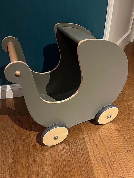 Dockvagn i trä, röd/blå