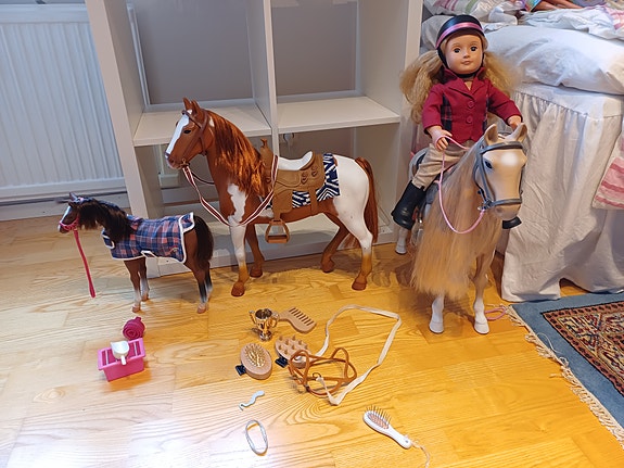 Our Generation dockset med hästar, frisörstol, Camping och badkar
