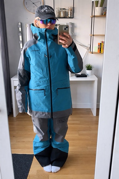 Peak performance skidställ jacka och byxa blå grå