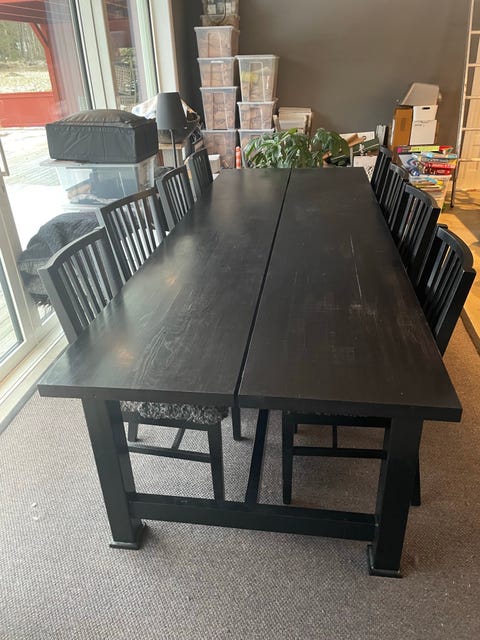 Handgjord matbord + 6 stolar