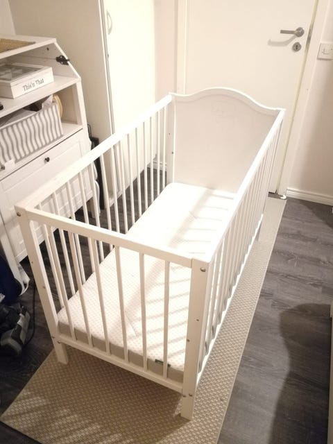 Vit barnvagga i trä