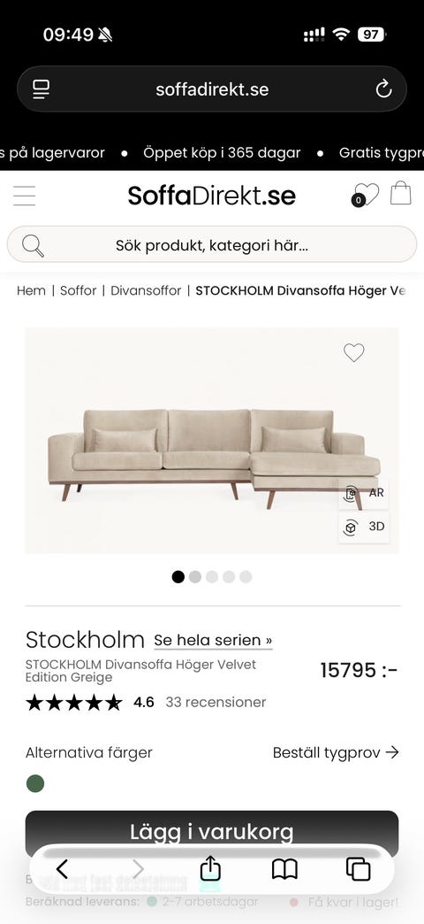 27 000 krKAP Härlig djup divansoffa, showroom-ex - Sweef Giraffen SweefStockholm6 febSweef.seLägg till i favoriter.