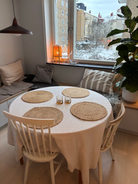 Möbel runt bord vitt trä