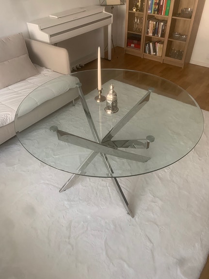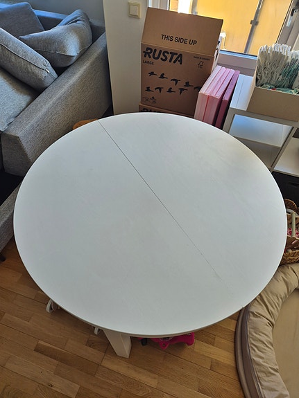 Runt matbord med iläggsskiva