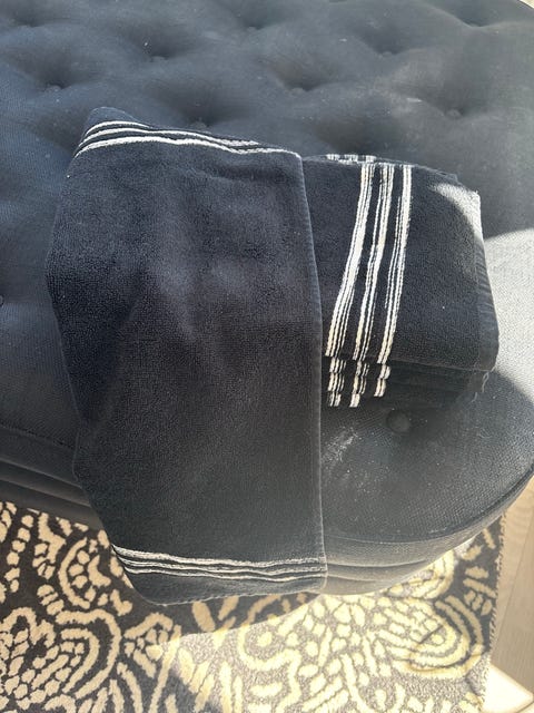 Handduk svart med ränder bomull