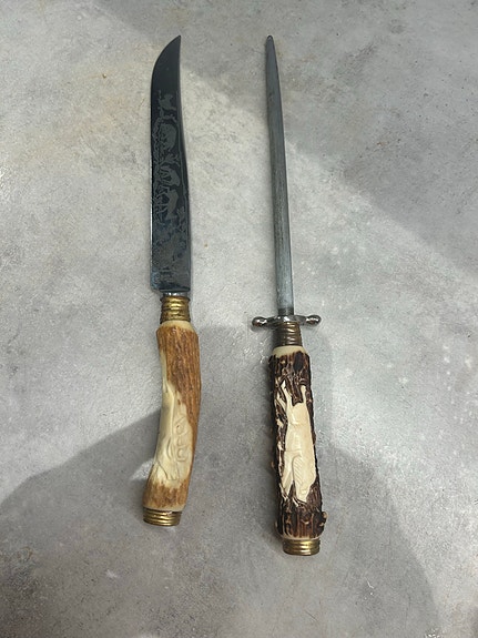 Solingen trancherset med snidade djurmotiv