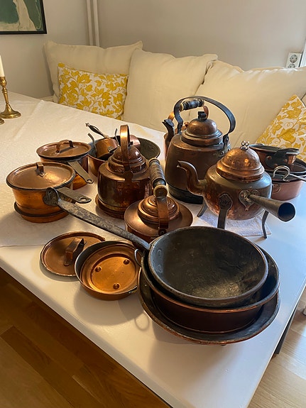 Kastruller och kaffepannor i koppar