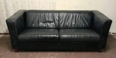 Svart skinnsoffa grupp