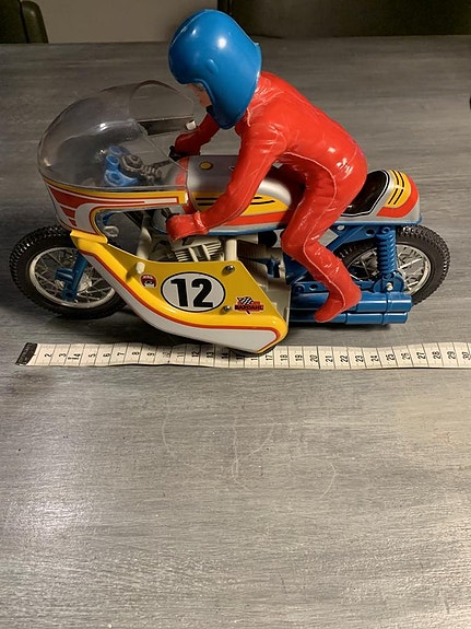 Leksaks motorcykel med förare från 1970 talet