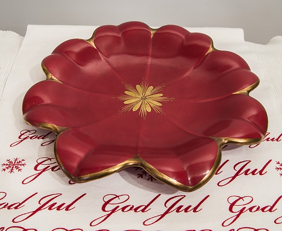 Röd Rubin, Gefle porslinsfabrik Arthur Percy, större blomformat fat