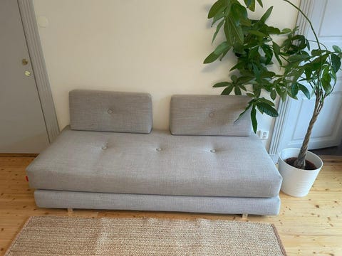 Bäddsoffan är perfekt för att välkomna gäster och som din egen säng i ett litet hem