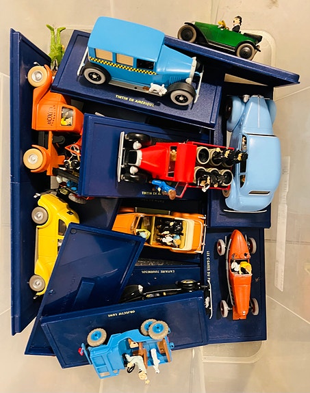 Tintin Samling leksaksbilar på ställningar för samlaren
