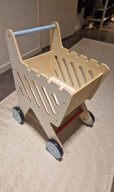 Barnvagn i trä med hjul