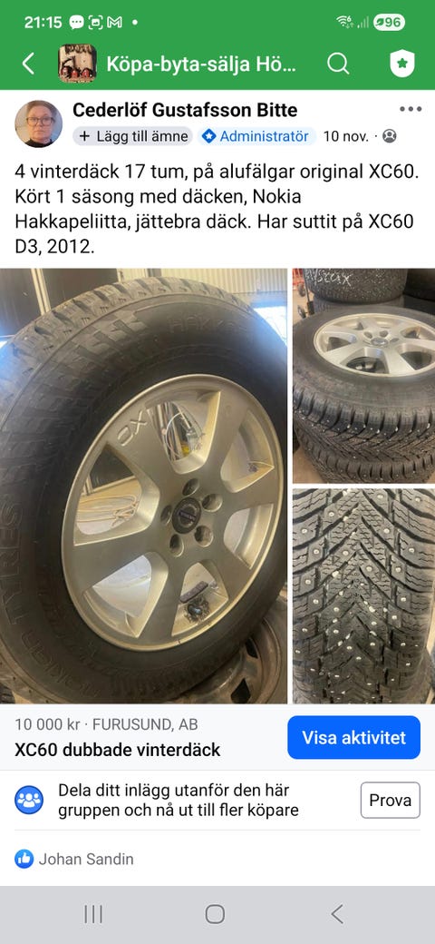 10 150 kr4 dubbdäck Nokia Hakkapeliitta på alufälgar, anv 1 säsong.Furusund25 novLägg till i favoriter.