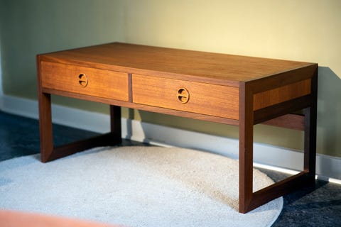 Teakbyrå med två lådor.