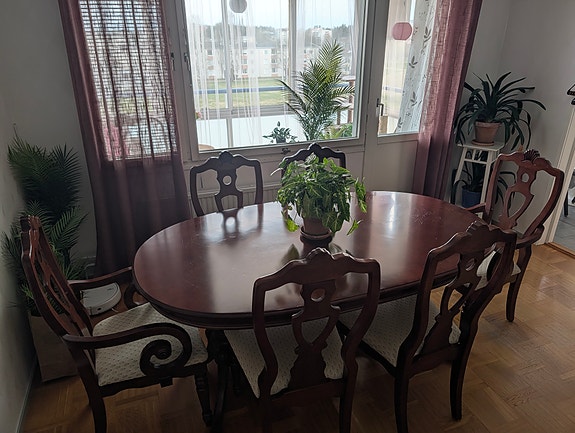 Matbord med sex stolar
