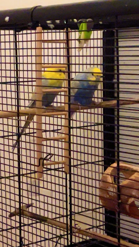 2st Tama Nymfparakiter med bur
