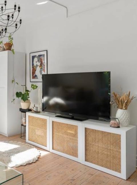 TV - bänk med rottingluckor