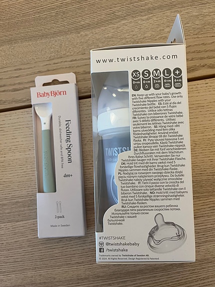 Twistshake nappflaska, BabyBjörn skedar x2 set - helt nya